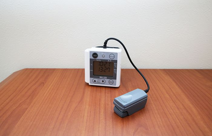 緊急事態への備えとして、AED、パルスオキシメーター、酸素ボンベ、血圧計などを設置しています。