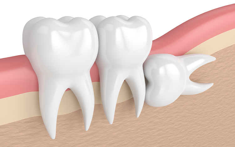 親知らずは必ずしも抜く必要はなく、まっすぐに生えていてセルフケアを行える状態であれば、そのままで問題はありません。しかし、横向きや斜めに生えてしまうとむし歯や歯ぐきの腫れといったトラブルを起こしたり、周囲の歯に悪影響を及ぼしたりするため、抜歯をご提案する場合があります。